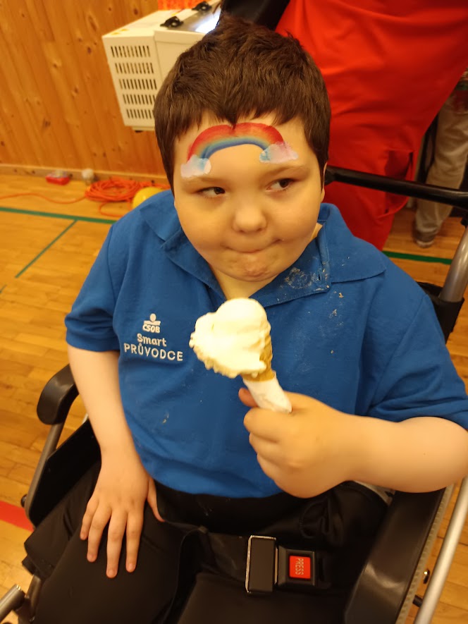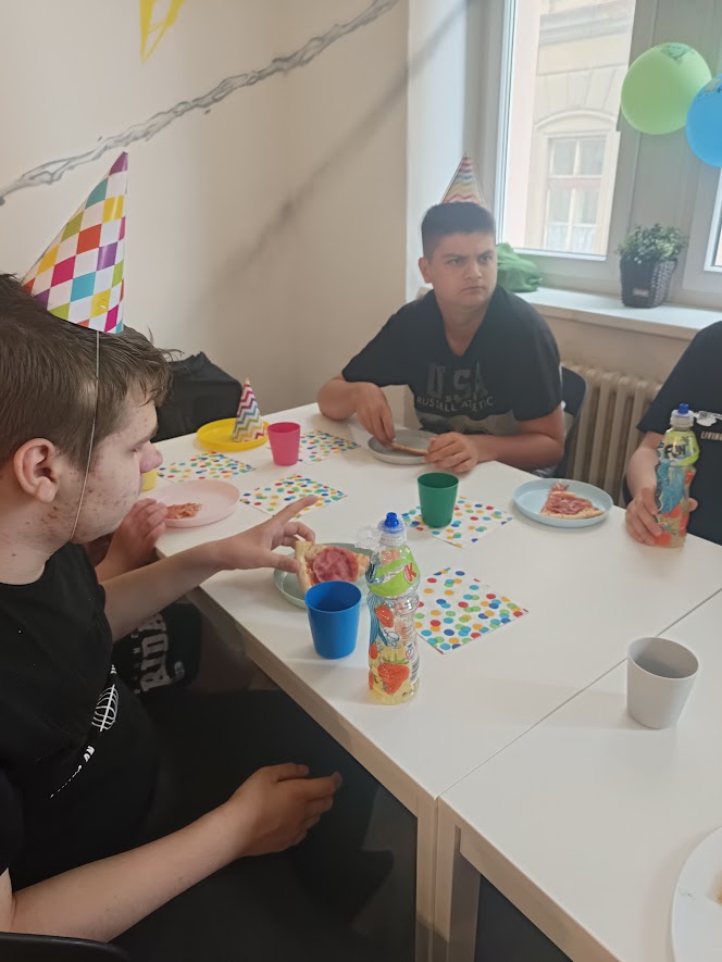 I měsíc květen byl bohatý na různé aktivity. Začátkem května se někteří žáci poprvé podívali do CINEMA CITY na pohádku Pyšná princezna. Honzík slavil 15. narozeniny, Oskárek 13 let. Oslava proběhla v URBAN aréně na trampolínách. Nezapomněli jsme ani na maminky a vyrobili jim dáreček. Hezký květnový den jsme strávili s canisterapeutickým psem Casperem a jeho paničkou Káťou Pálkovou. Oskar s Danem se zúčastnili akce Zdravá pětka. Také jsme navštívili ZOO a cukrárnu. Nejvíce vydařená akce byla ke Dni dětí. Hudba, dílničky, malování na obličej, pohádkové postavy, focení…