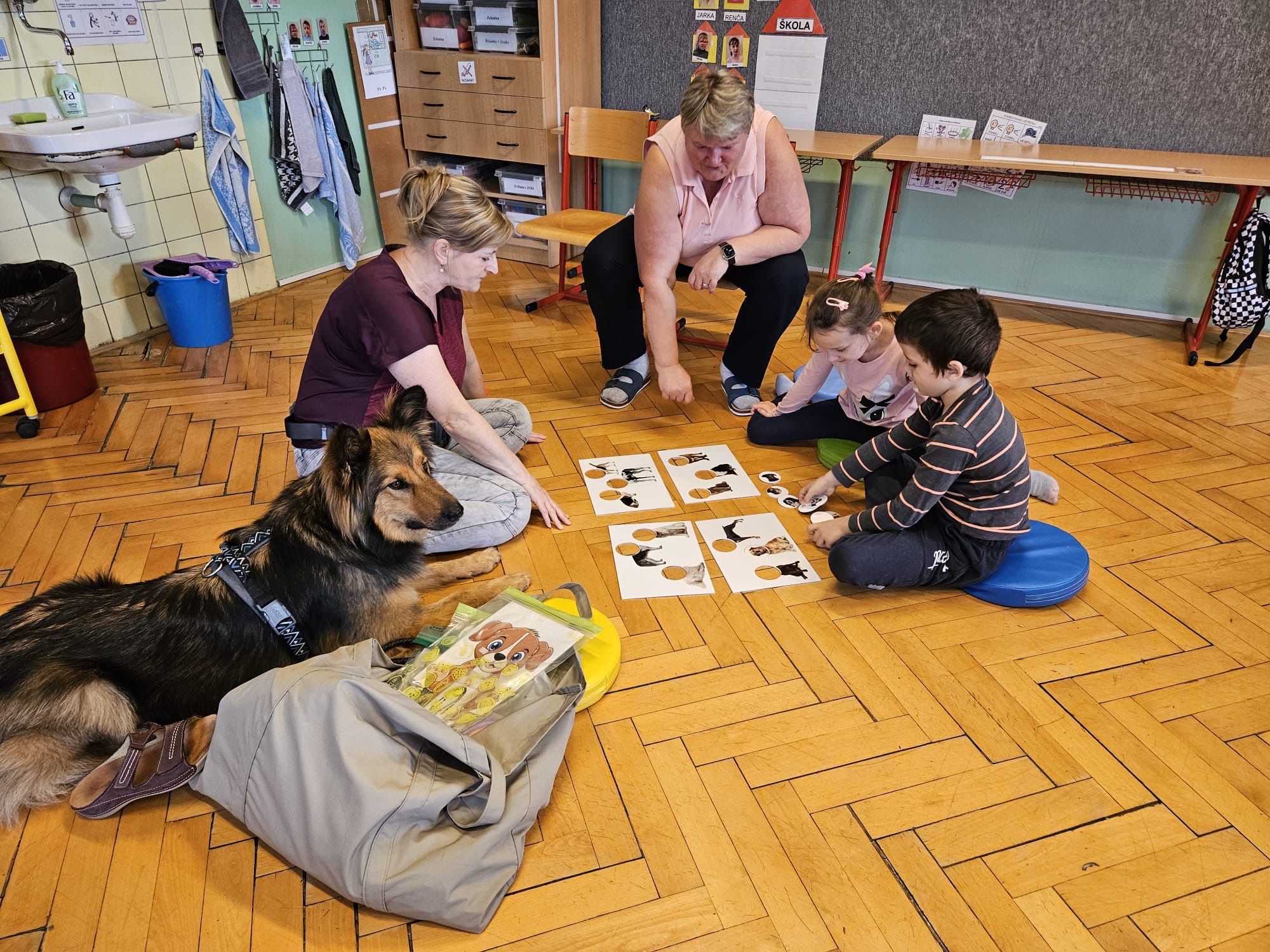 Ve čtvrtek 9. října 2025 se děti měly možnost zúčastnit krásného programu canisterapie, při kterém se seznámily s pejskem jménem Casper. Společně jsme si povídali o tom, co všechno pes potřebuje – děti přiřazovaly k pejskovi misku, vodítko a další potřebné věci. Nechyběly ani psí puzzle, při kterých děti poznávaly různé psí rasy.