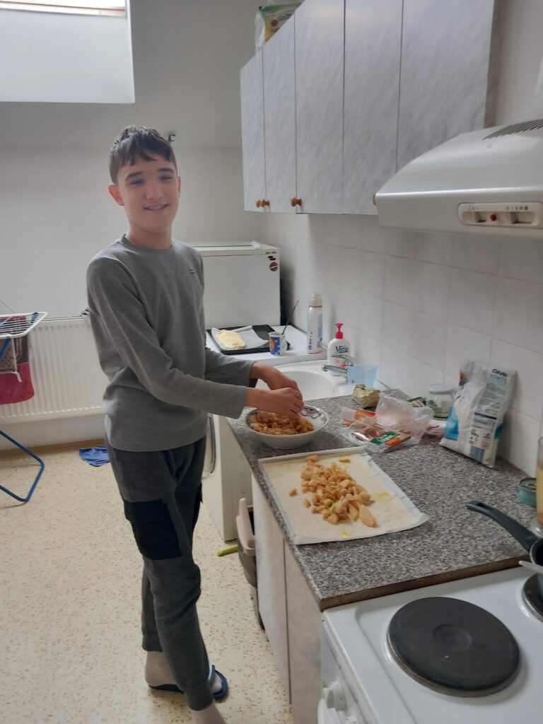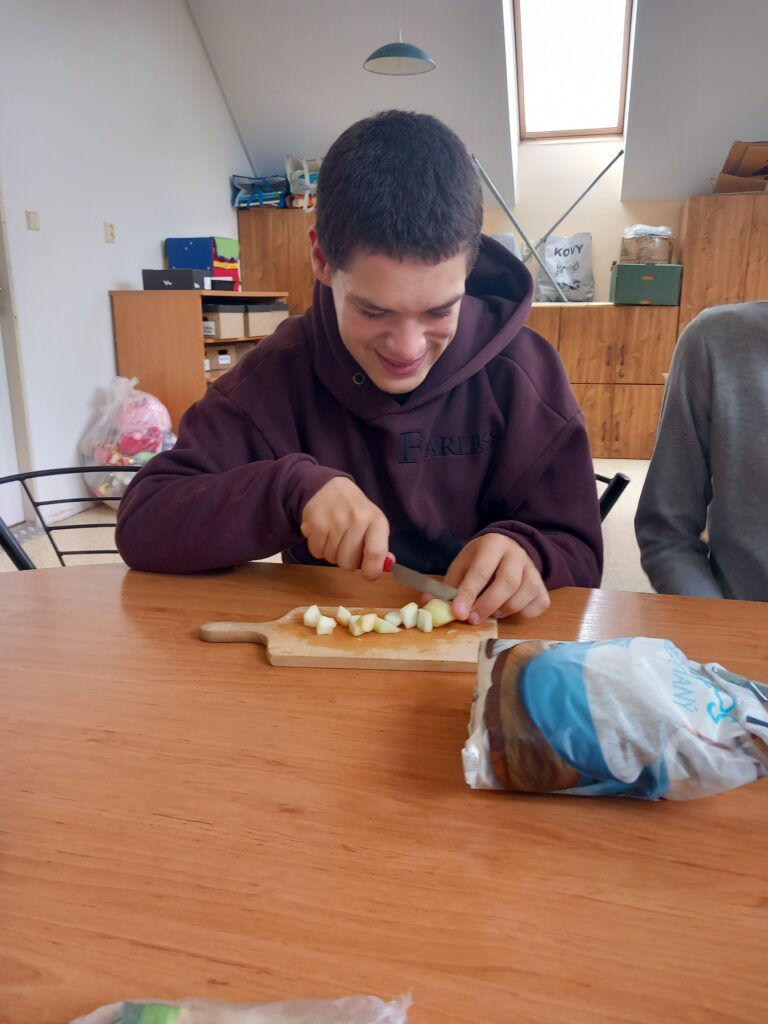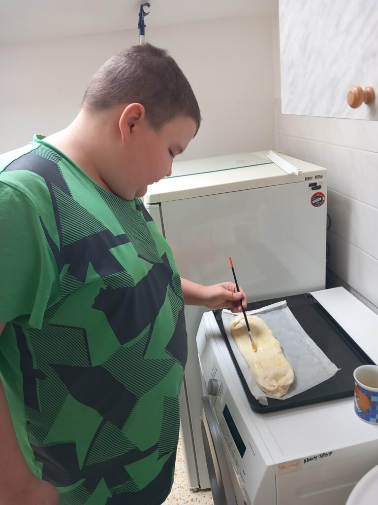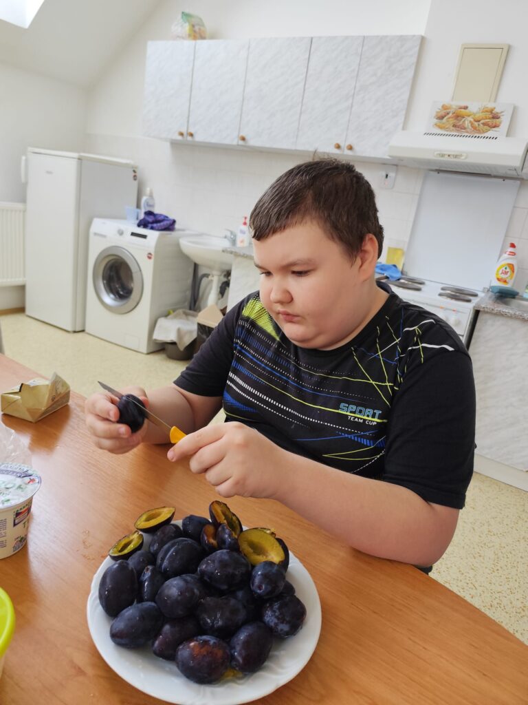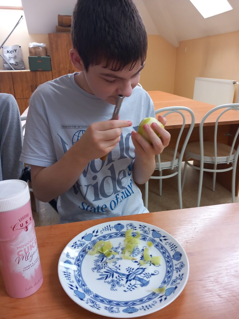 Po prázdninách jsme opět vyzkoušeli svá kuchařská umění a tak jsme ve školní cvičné kuchyňce během měsíce září a října upekli švestkový koláč a jablečný štrůdl. Všichni se činili, práce nám šla od ruky a společnými silami jsme vše snědli. Bylo to moc dobré.