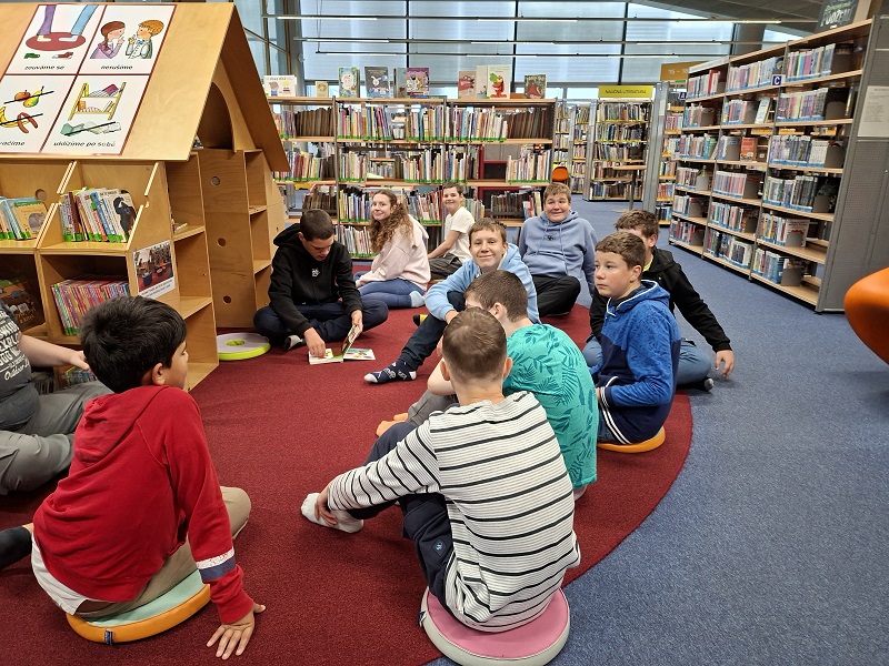 Dne 2. října 2025 se děti seznámily s prostředím knihovny, především s oddělením pro děti, a vyslechly si ukázku četby z knihy pro dětské čtenáře.