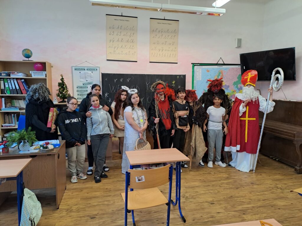 5. 12. nejstarší žáci naší školy navštívili v převlečení za Mikuláše, čerty a anděly naše spolužáky v budově Orlí. V každé třídě děti trochu postrašili, zazpívali si společně koledy a odměnili děti sladkostmi. Děkujeme a chválíme naše nejstarší žáky za jejich přístup a krásné a nápadité převleky.
