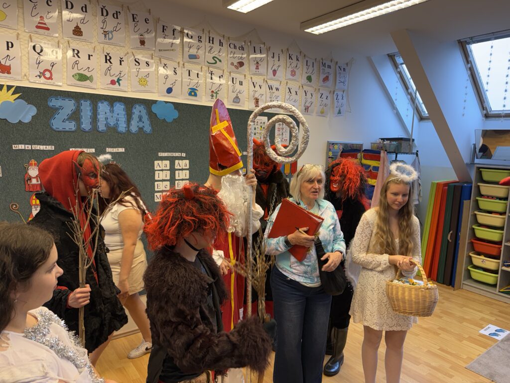 Psal se 5. prosinec a do školní budovy v Orlí ulici se pod vedením paní učitelky Šťastné vypravil průvod andělů a čertů v čele s Mikulášem. Mise splnila účel – děti z Orlí byly některé sice vyplašené, ale šťastné a plné velmi intenzivních dojmů. Mikulášská svita byla totiž dost působivá. Podobná akce pak proběhla o několik dní později i v ZŠ Gollova.