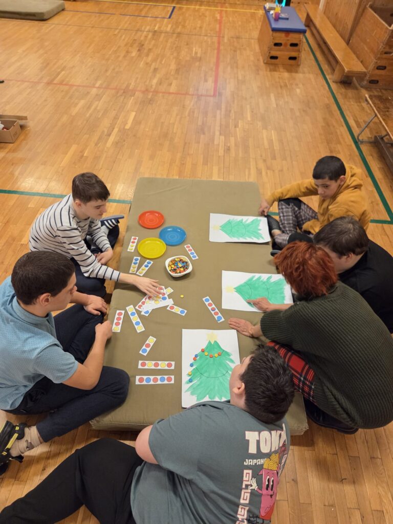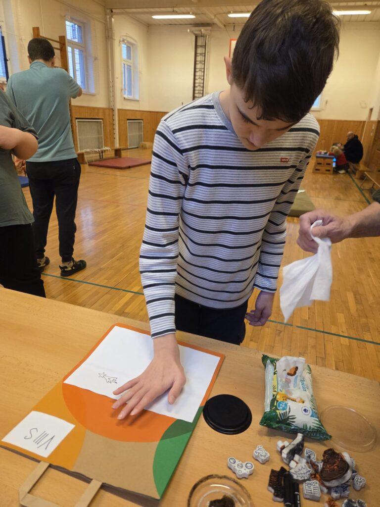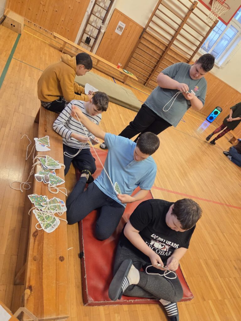 Předvánoční čas jsme si zpestřili projektovým dnem plným vánočních aktivit v tělocvičně naší školy. Chlapci si ozdobili stromeček, vyfotili se se světýlky a ozdobili si tiskátky tašku, do které si pak vkládali všechny svoje výrobky. Jemnou motoriku procvičili na vánočních provlékačkách, nazdobili si korkové perníčky a domů si odnesli i vánoční přáníčka. Nebyla by to ale školní akce, aby nechyběly i úkoly na procvičení mozkových závitů. A tak se třídily ozdoby podle barev, skládaly barevné řetězy na stromeček podle pokynů nebo řešily posloupnosti logických řad. Nakonec si vyrobili své originální betlémy ze samolepek všech důležitých postav a zvířátek …
