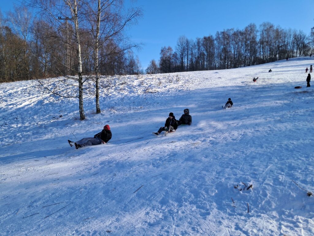 „Na tři krále o krok dále“, praví lidová pranostika. My jsme ale využili hlavně slunečného počasí, abychom si došli na hodinku zabobovat na svahu u bývalé rušičky. Sněhu bylo dost, svah příjemně uježděný a zalitý sluncem. Děti se do školy vracely velmi spokojené.