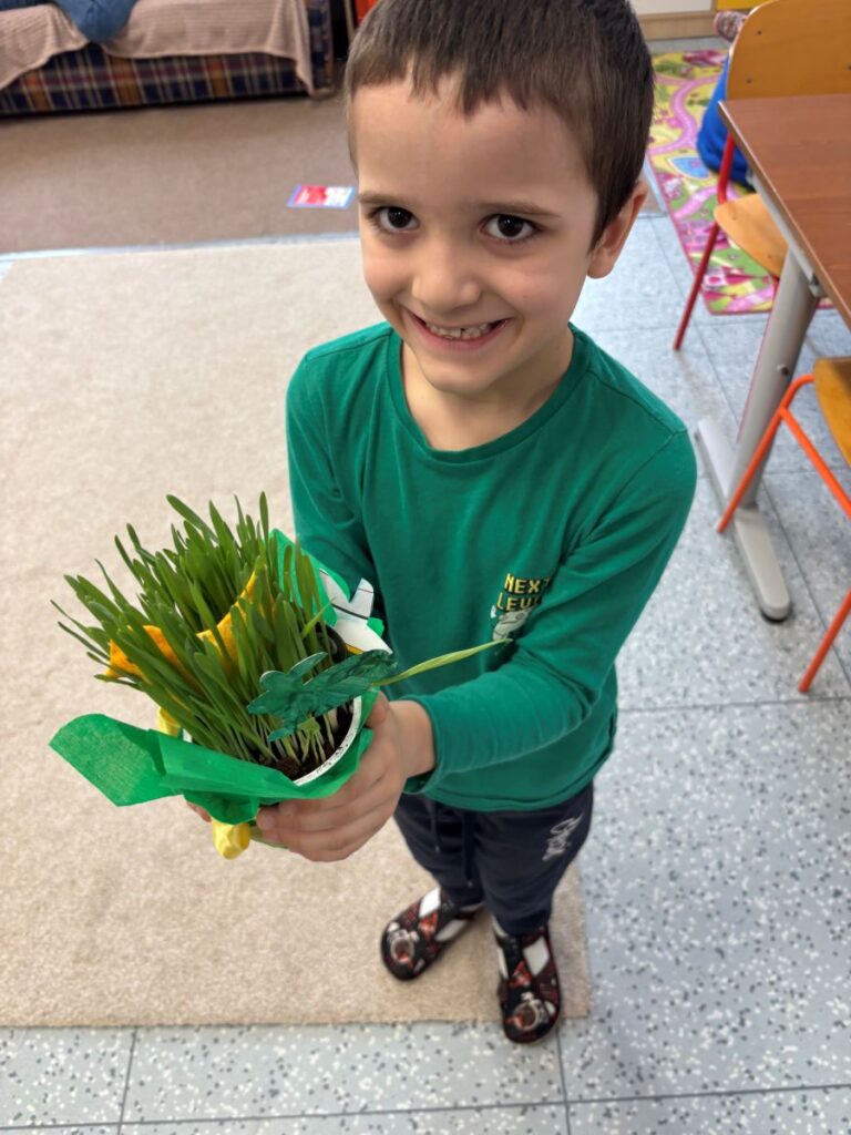 Zúčastnili jsme se akce „Velikonoce očima dětí“ na liberecké radnici, kde děti viděly svátky v širším kontextu, ne jen jako barvení vajíček. Pravidelně jsme chodili na hřiště, protože pohyb venku má větší přínos než pasivní aktivity uvnitř. Nechybělo ani velikonoční tvoření, kde si děti procvičily zručnost a trpělivost. Zasadili jsme také velikonoční osení a sledovali, jak roste.