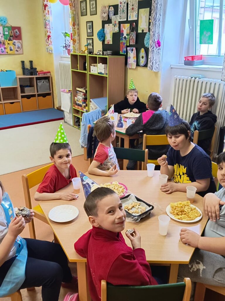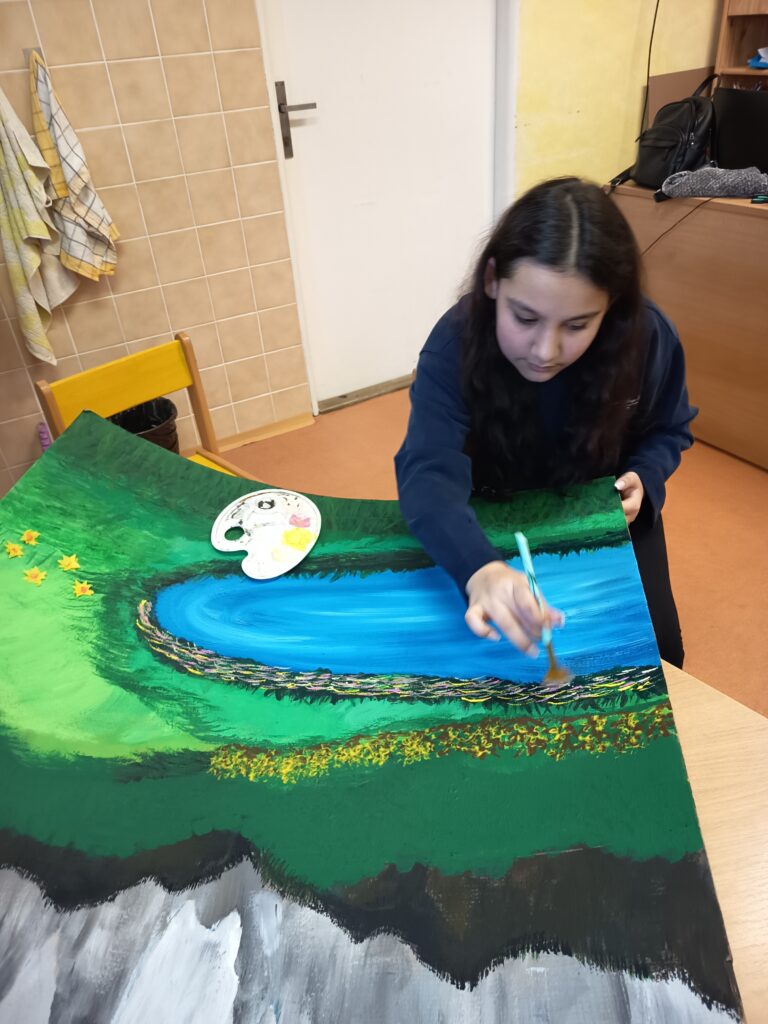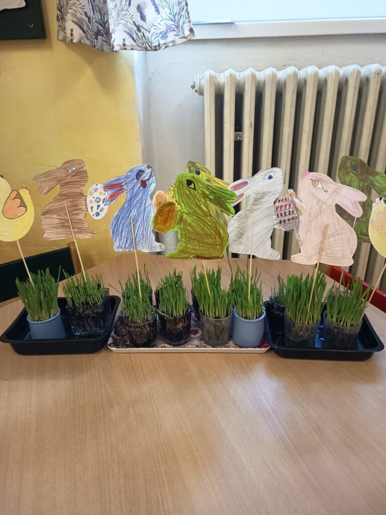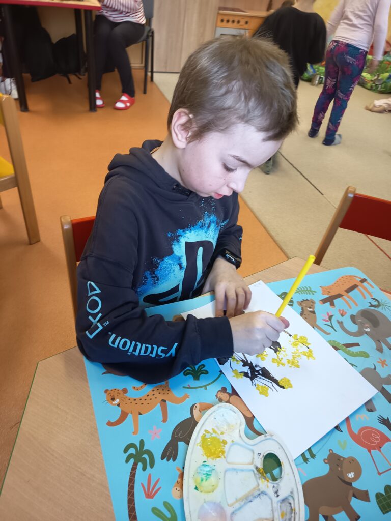 Společně s dětmi jsme si povídali o změnách v přírodě, pozorovali první jarní květiny a vyráběli tematické dekorace, přání k MDŽ a zaseli osení. Děti si vyzkoušely různé výtvarné techniky – kresbu, malbu i zdobení vajíček voskem. Velkým zážitkem bylo také společné malování velkého obrazu jarní krajiny akrylovými barvami. Také jsme v tomto měsíci slavili narozeniny naší kamarádky.