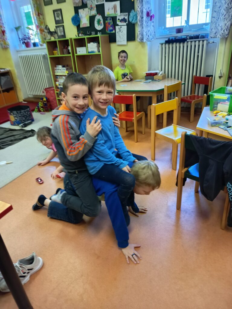 V rámci pěstitelských činností jsme se pustili do přípravy záhonů a chystáme se na jarní výsadbu. Venku jsme trávili hodně času – chodili jsme na procházky, pozorovali probouzející se přírodu a nechyběly ani hry na hřišti.
