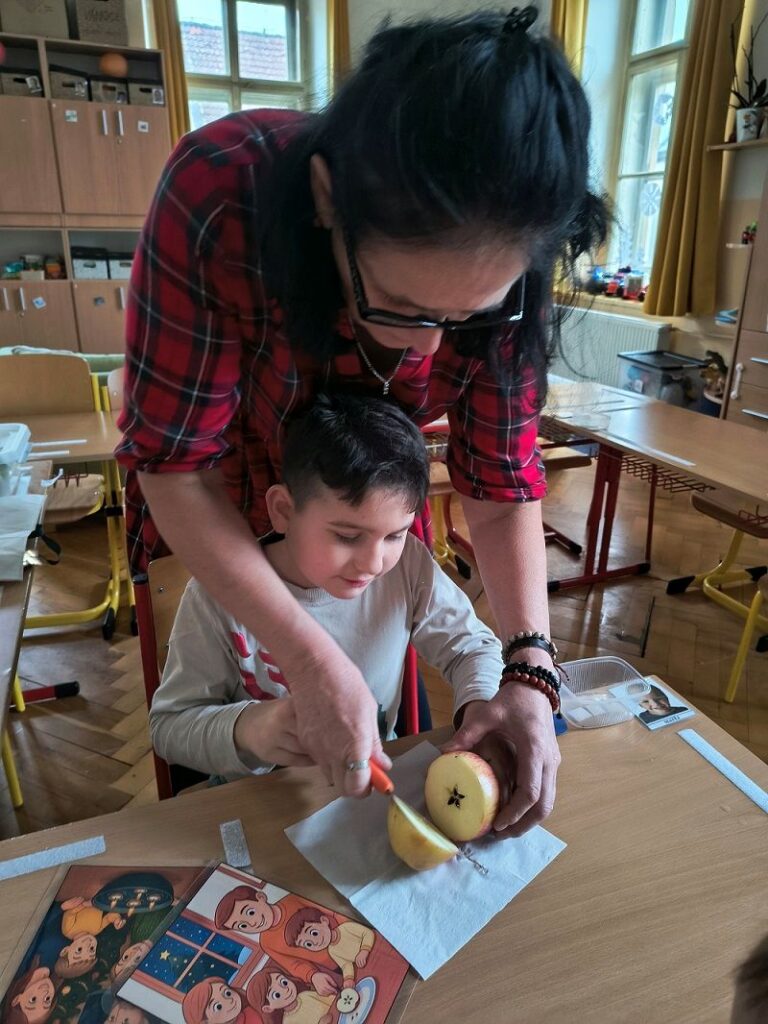 Začátkem měsíce jsme ve škole přivítali čerty, které jsme i z těsta vyráběli. Nechyběla ani návštěva výstavy betlémů v kostele a výroba dárečků pro rodiče, do kterých jsme vložili velký kus radosti. Před vánočními prázdninami jsme navštívili výstavu stromečků, ozdobili si třídní vánoční stromeček a připomněli si tradiční zvyky – krájeli jsme jablíčko i pouštěli lodičky z ořechových skořápek. A protože jsme asi byli opravdu hodní, objevila se pod stromečkem i hromada krásných dárků.